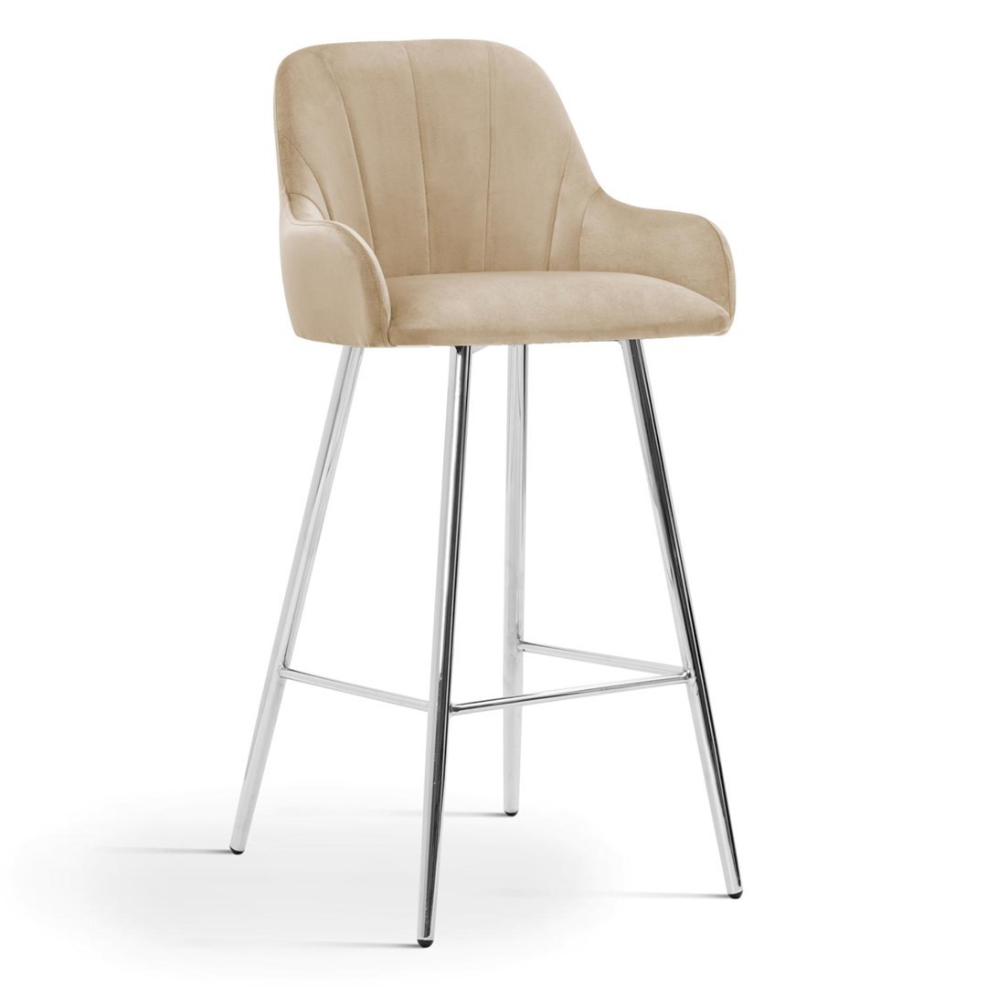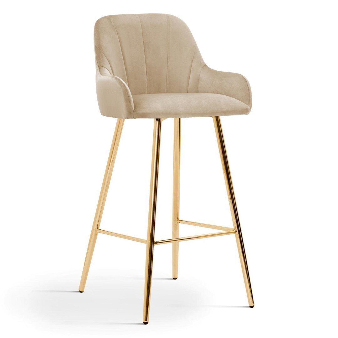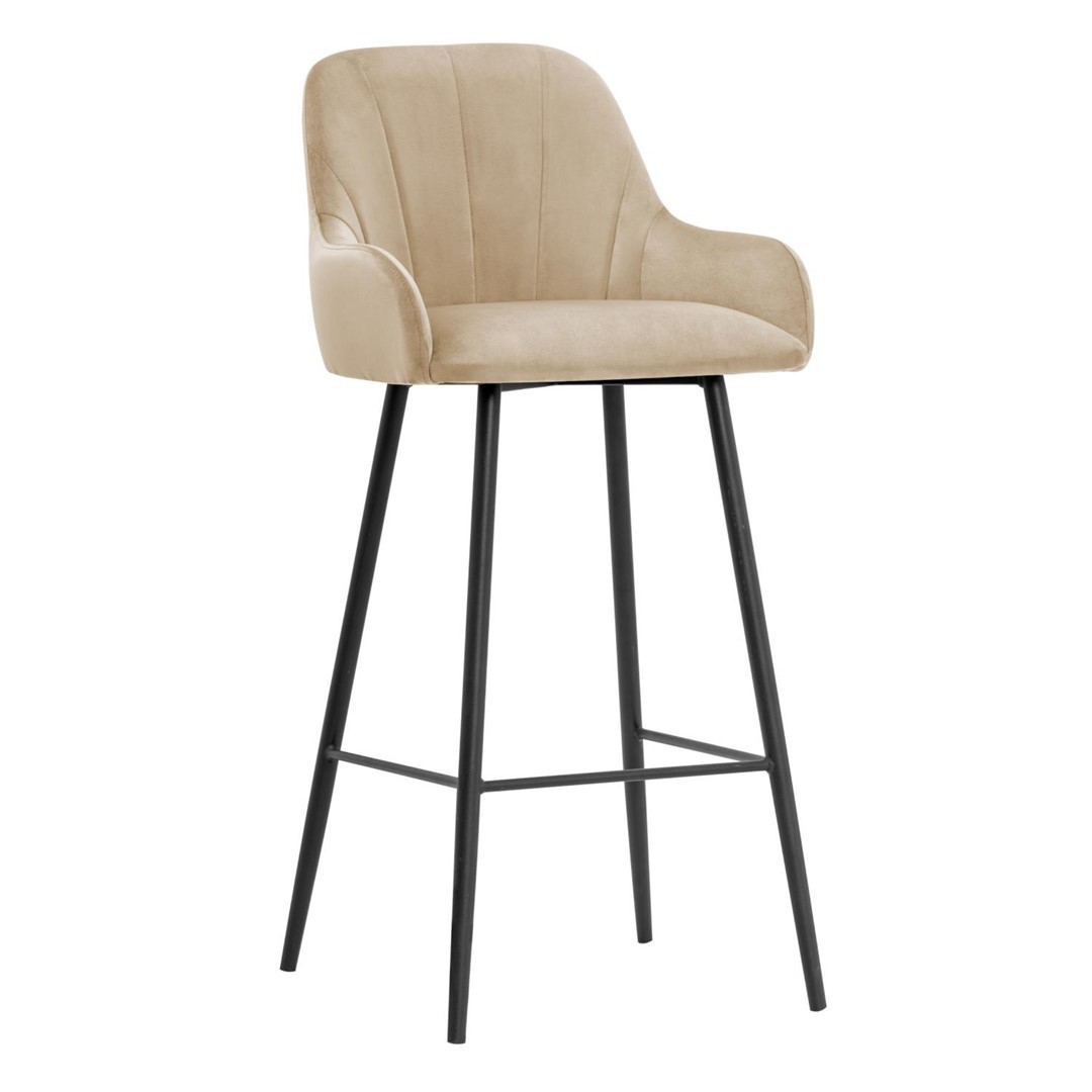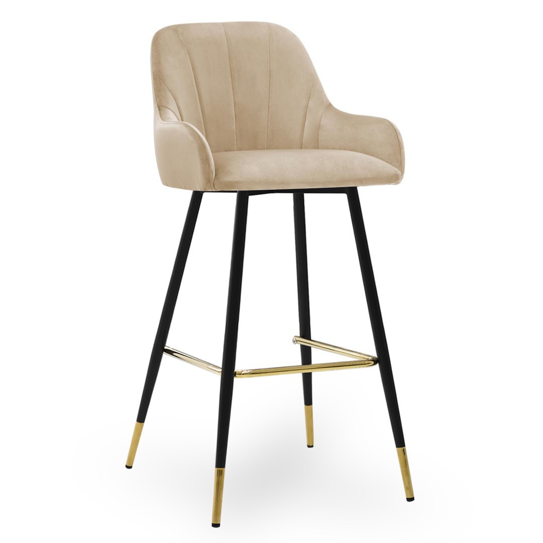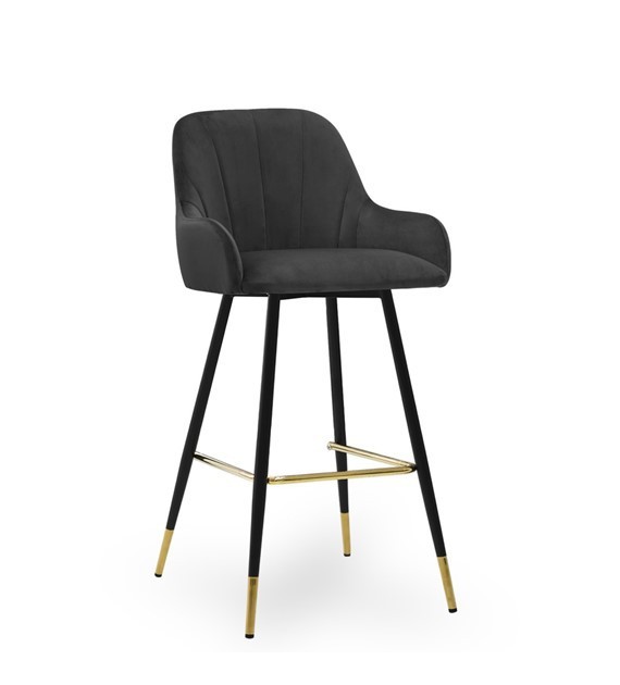 The bar stool is made on a wooden frame and metal legs. Due to the timeless design, the chair fits into any interior, depending on the chosen fabric and the color of the legs.