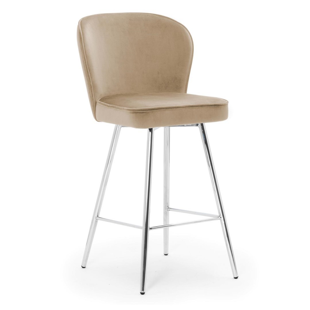 The Aine from La vie Maison is an upholstered barstool with a timeless design. The bar stool is made on a wooden frame with metal legs.