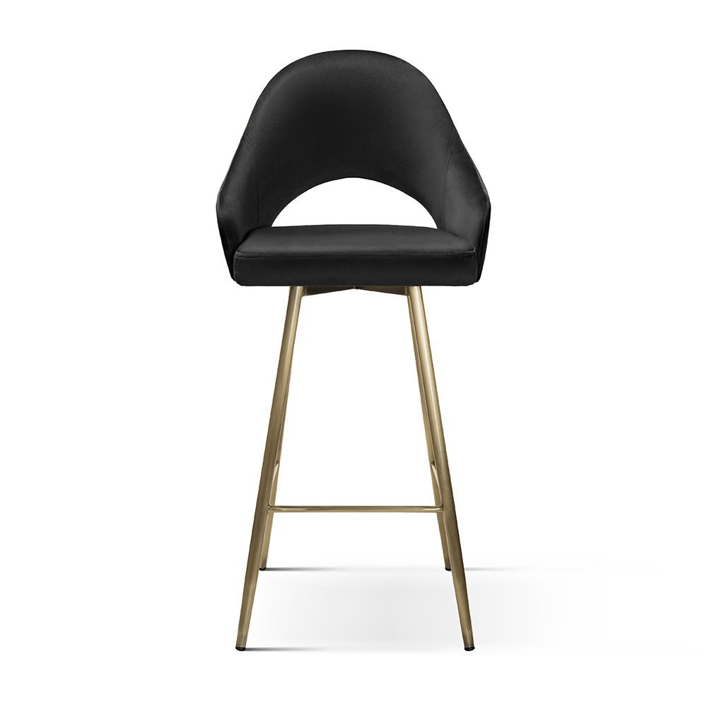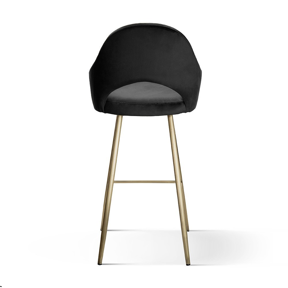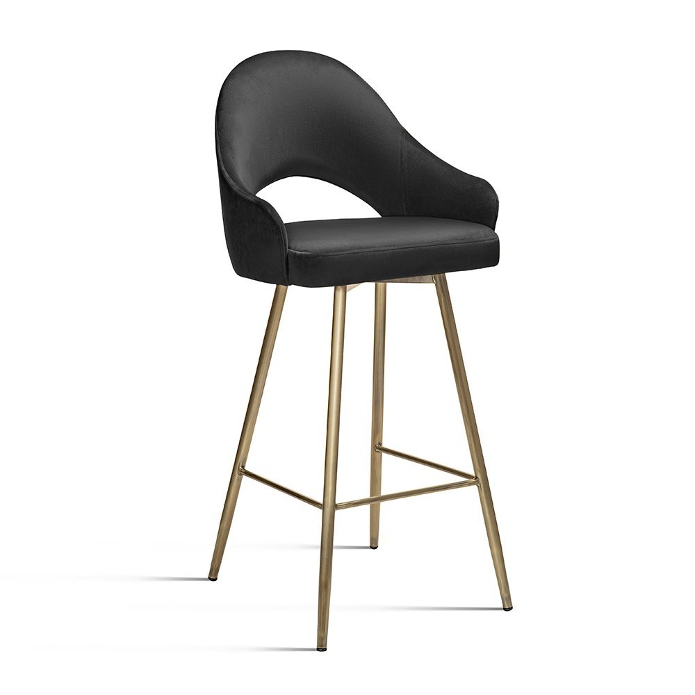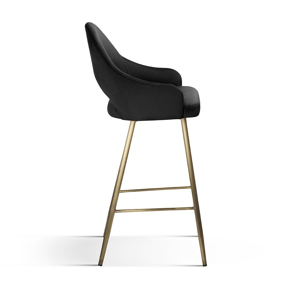 The bar stool is made on a wooden frame and metal legs. Due to the timeless design, the bar stool fits into any interior, depending on the chosen fabric and the color of the legs.