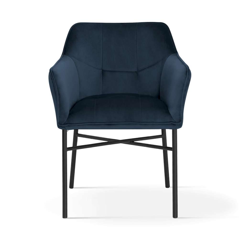 The model is characterized by high armrests. Decorative stitching on the backrest and the high-quality finish. The chair is made on a metal frame and metal legs.