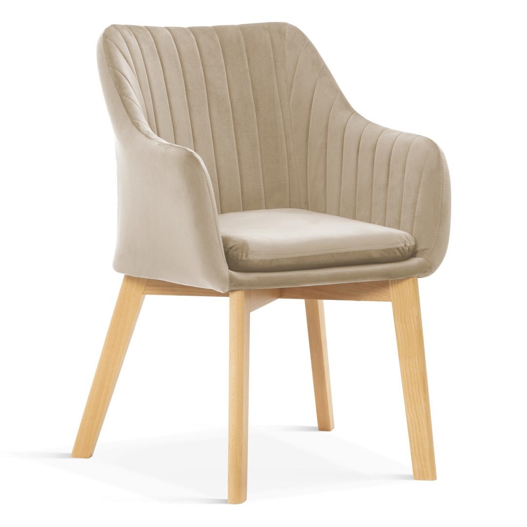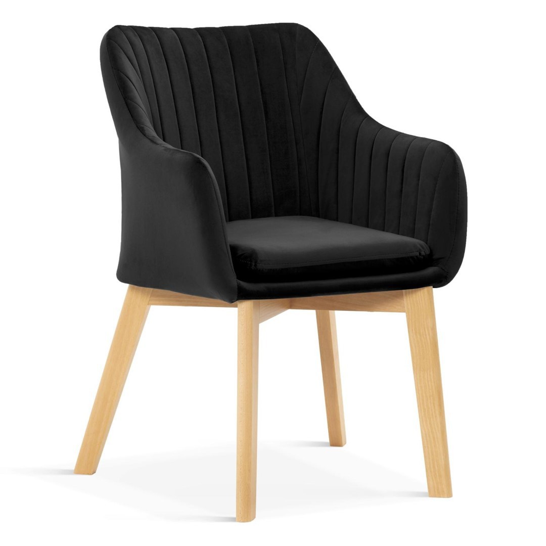 Vigo II is an upholstered chair made on a metal frame. Interesting vertical stitching on the inside of the backrest, tub shape and ergonomic height of the armrests make this chair a real addition to your interior. The chair has a removable seat cushion.