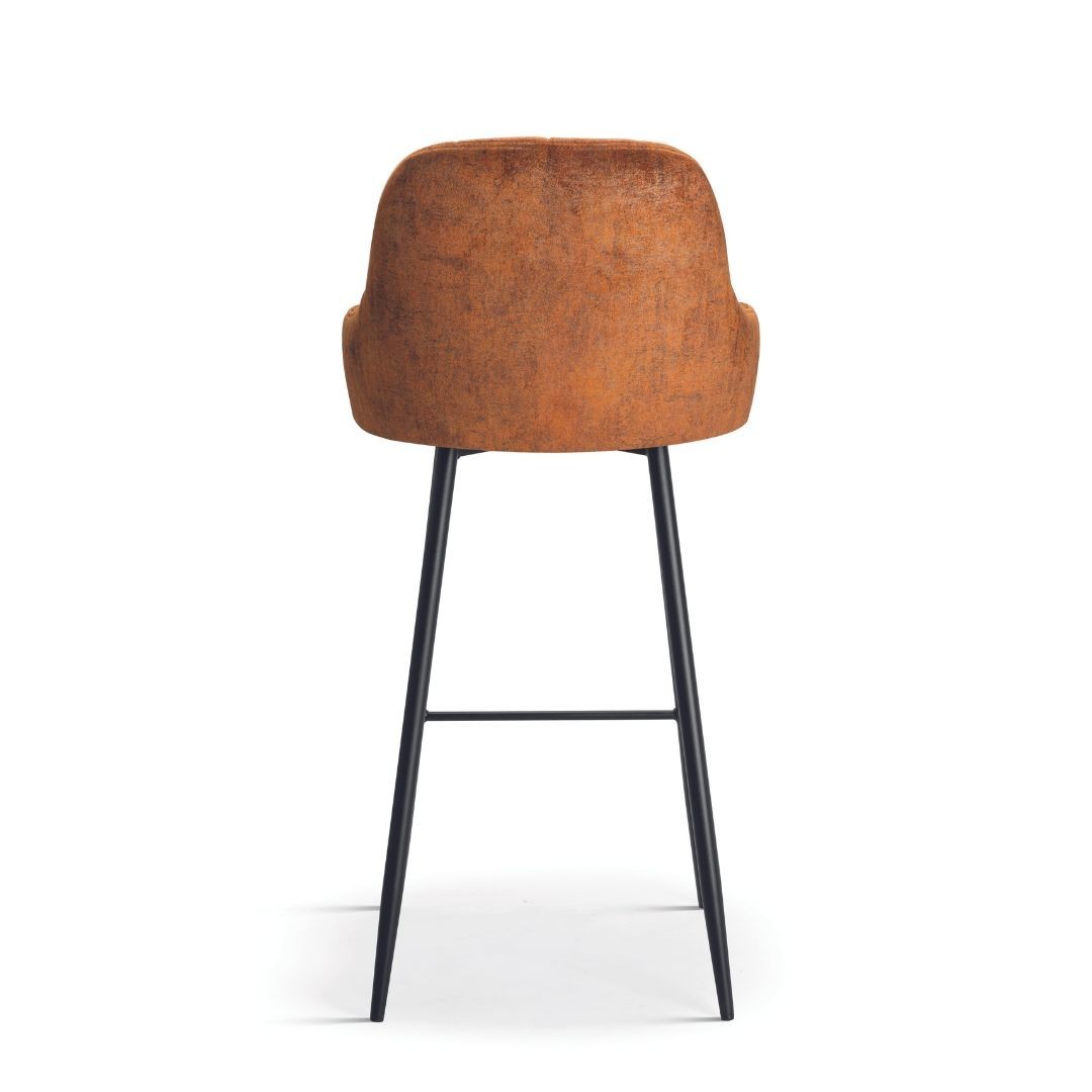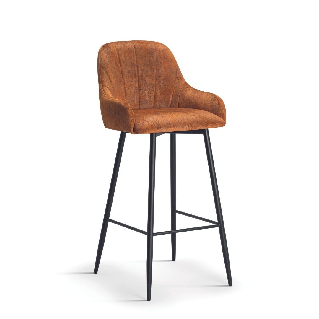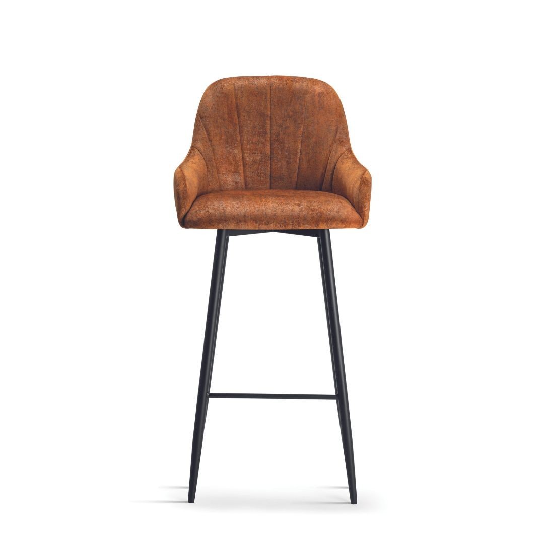 De barkruk is gemaakt op een houten frame en metalen poten. Door het tijdloze design past de stoel, afhankelijk van de gekozen stof en de kleur van de poten, in elk interieur.