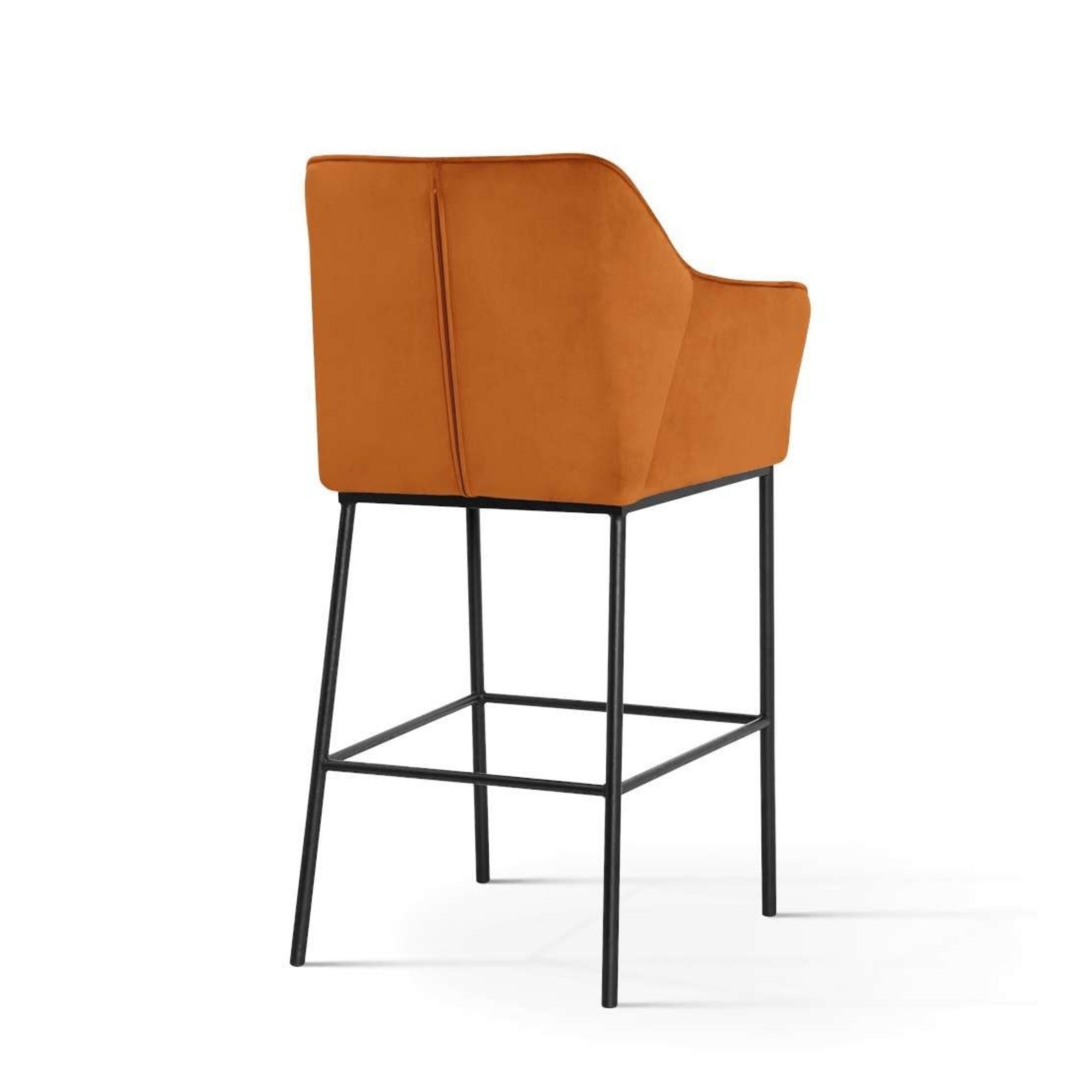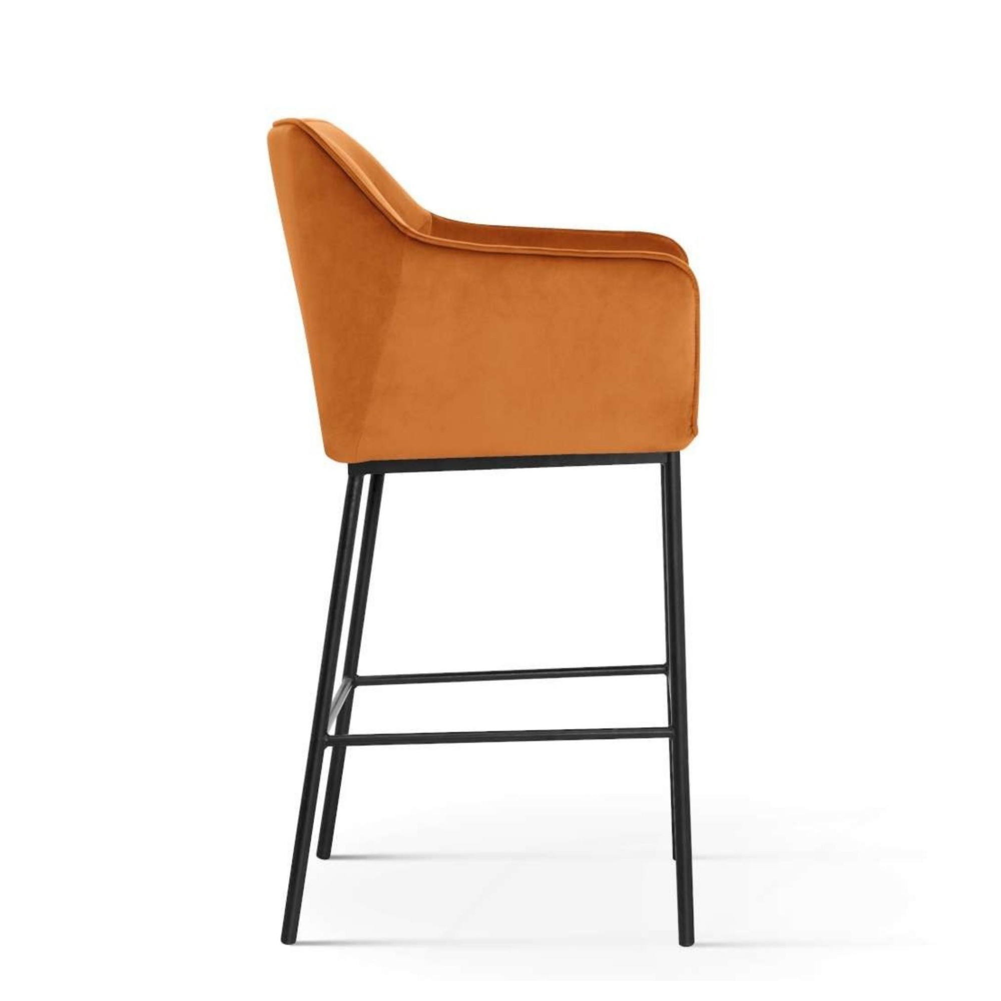 De Lova barkruk met loft design is bekleed met een fijn geweven structuurstof. De zitting is afgewerkt voor optimaal gebruiksgemak. De stoel heeft ergonomisch aangepaste, hoge armleuningen. Het geheel is gebaseerd op zwart metalen poten voor een mooie afwerking.