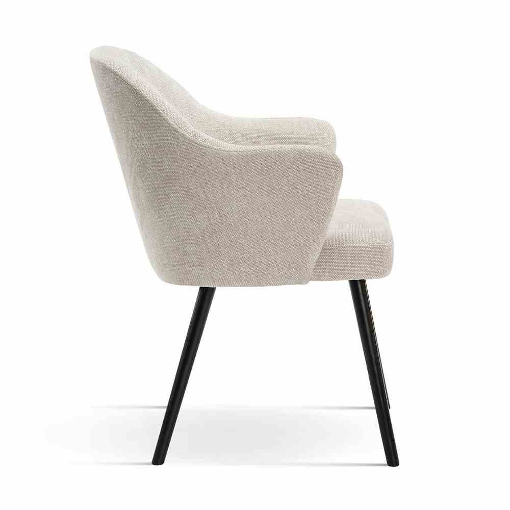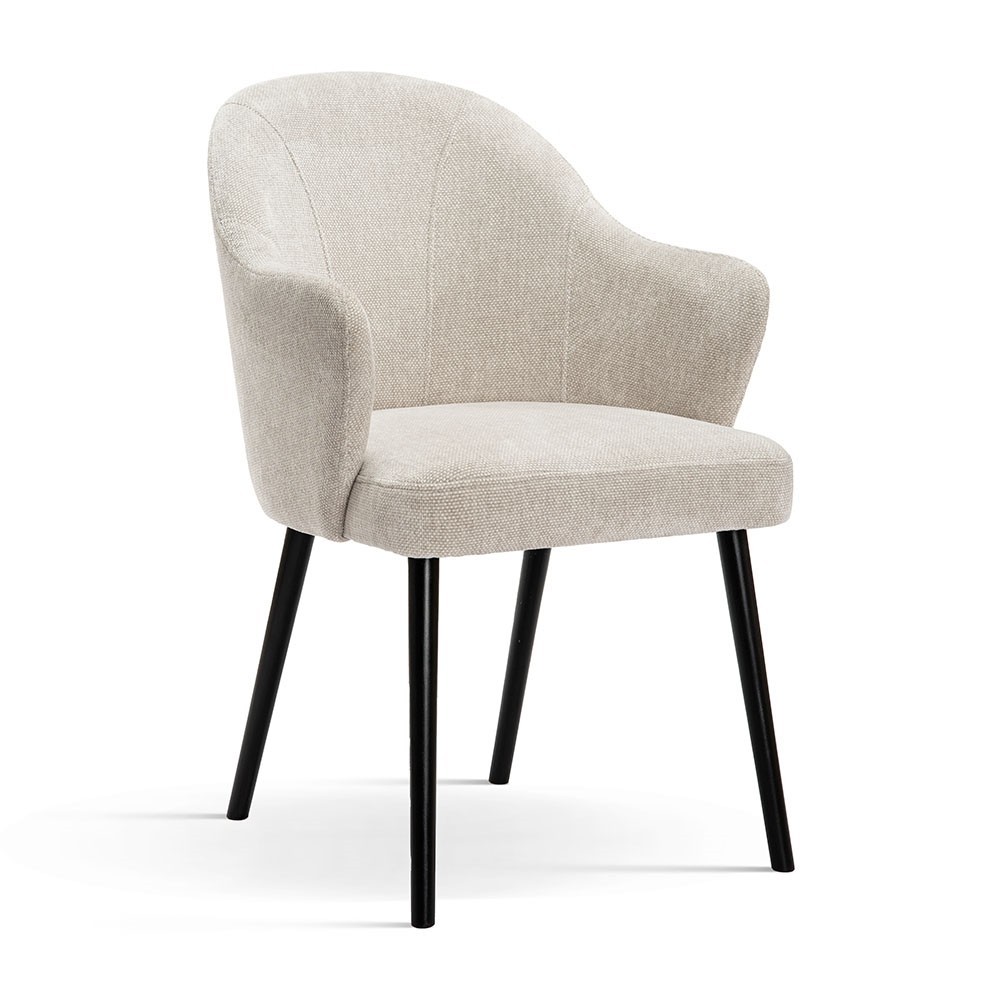De Mattis van La vie Maison is een elegante gestoffeerde eetkamerstoel met subtiel voorgevormde armleuningen. Een stoel met een moderne en originele vorm.