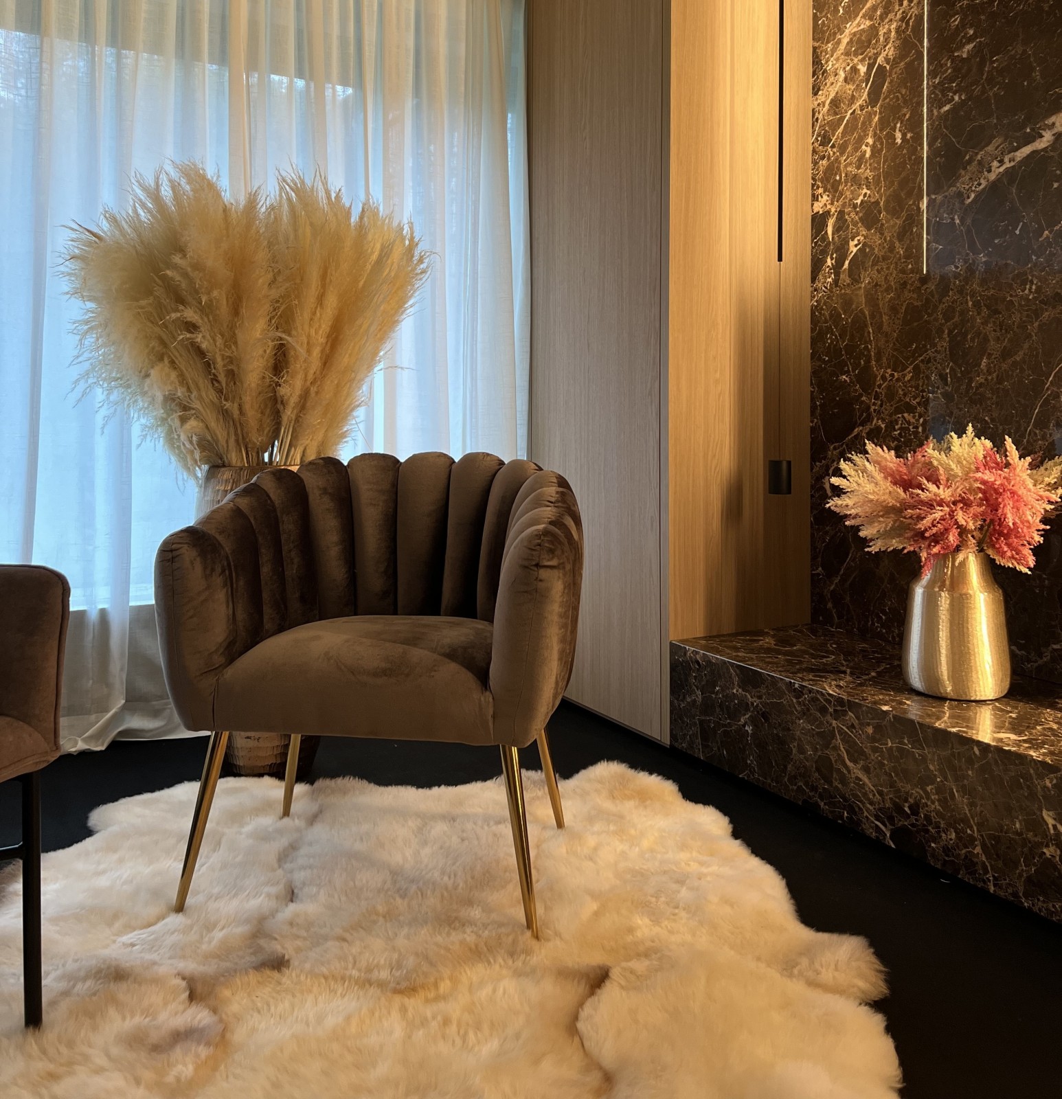 De Pia van La vie Maison is een stijlvolle gestoffeerde stoel met een dikke zitting. De zachte, geveerde rugleuning in combinatie met slanke poten maken de vorm elegant en modern.
