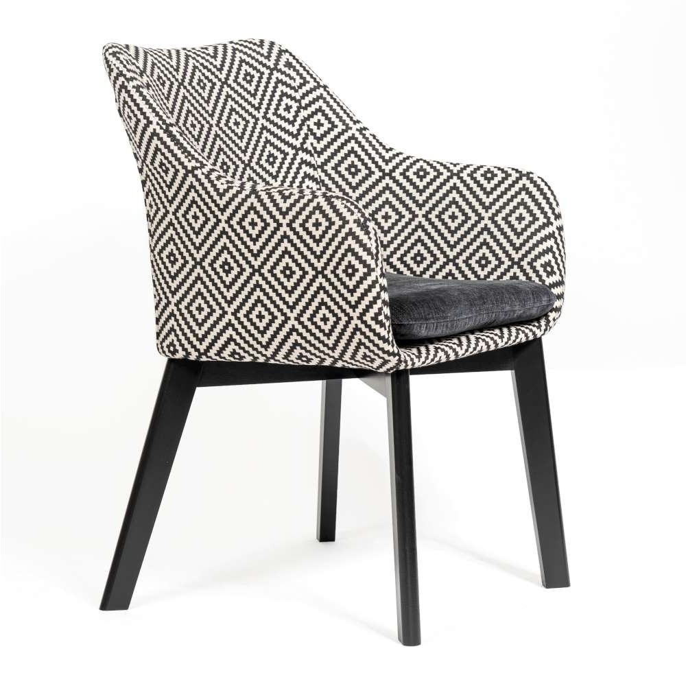 Vigo is een gestoffeerde stoel gemaakt op een metalen frame. Kuipvorm en ergonomische hoogte van de armsteunen. De stoel heeft een verwijderbaar zitkussen.